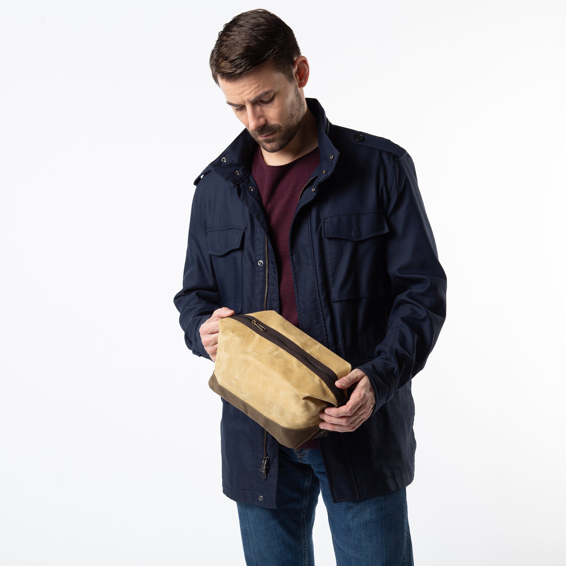 The Anchor Waxed Dopp Kit is our most spacious, functional, and stylish toiletry kit yet — designed to hold all your travel grooming essentials without ever struggling to zip it closed. Crafted in yellow and brown waxed canvas and finished with a classic navy anchor icon, this elevated dopp kit delivers both durability and refined coastal style.