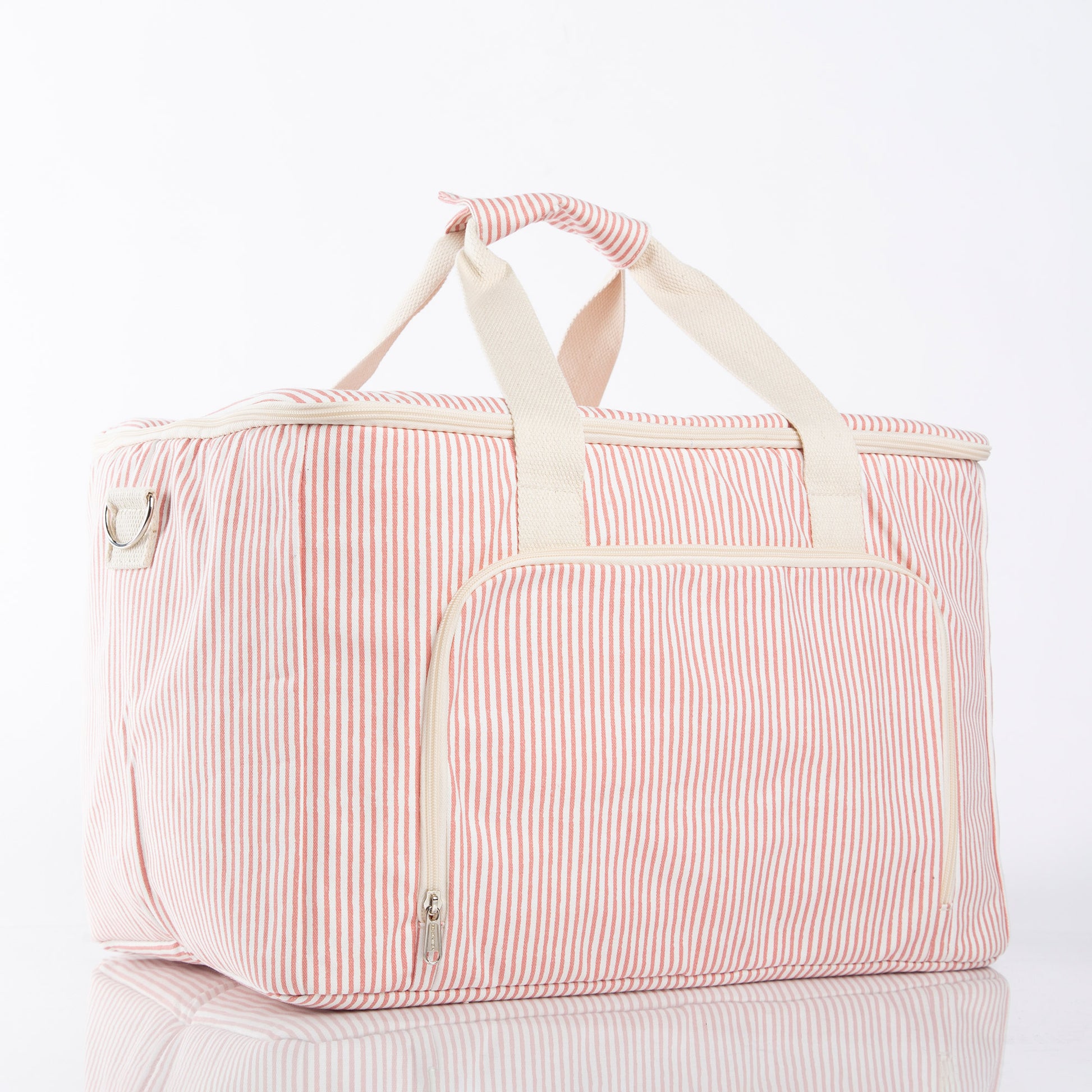 Crafted from durable 12 oz canvas in chic rose and cream stripes, this stylish cooler features a charming pickleball rackets icon on the front for a signature courtside touch. The USDA-approved insulated interior expertly maintains hot or cold temperatures, making it ideal for long match days, picnics, or weekend outings.